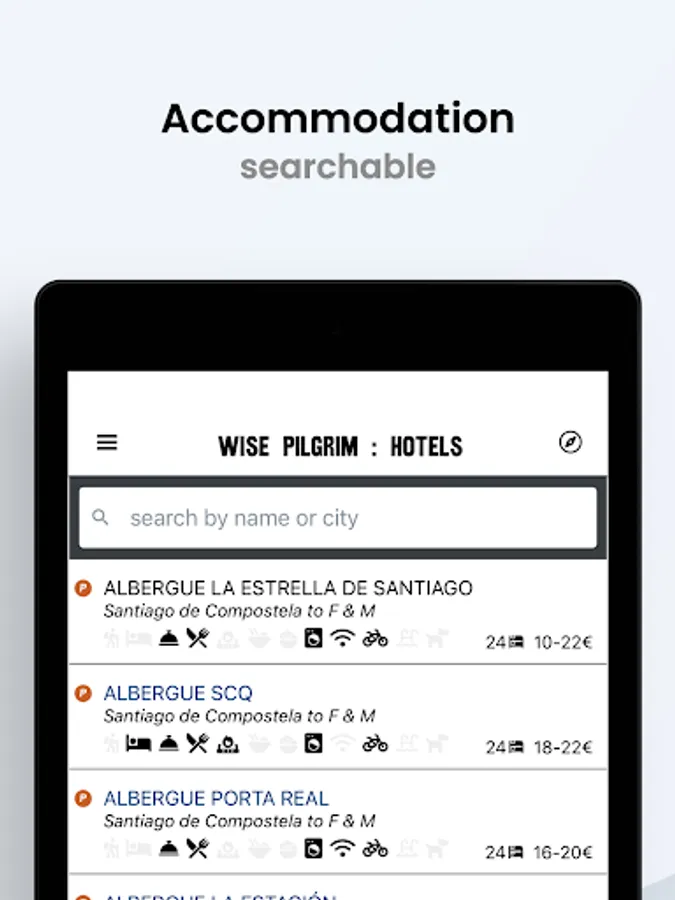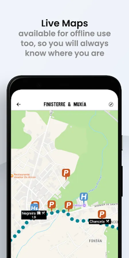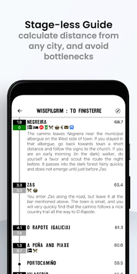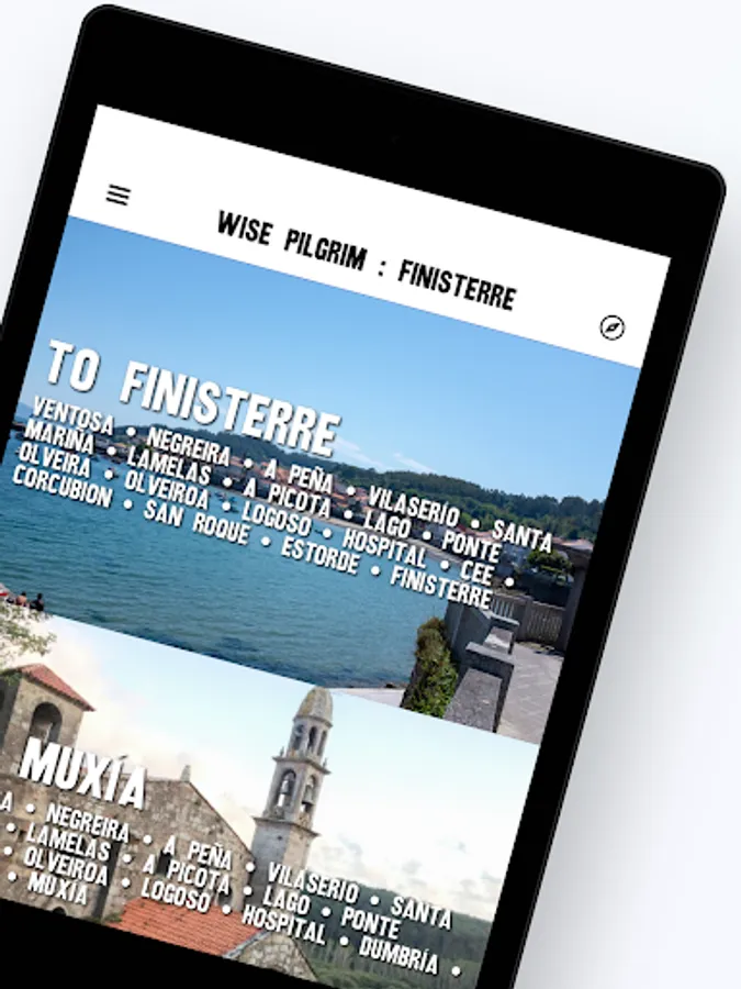 This guide covers the Caminos to Finisterre and Muxía. It has been redesigned and now works almost exclusively offline (to share your comments with others will require a data connection). As more and more albergues share their WiFi this becomes less of an issue, and the guide will tell you which ones offer WiFi.