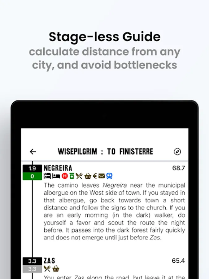 The app is updated regularly with new content and new features and offers you the ability to leave tips for pilgrims following behind you.