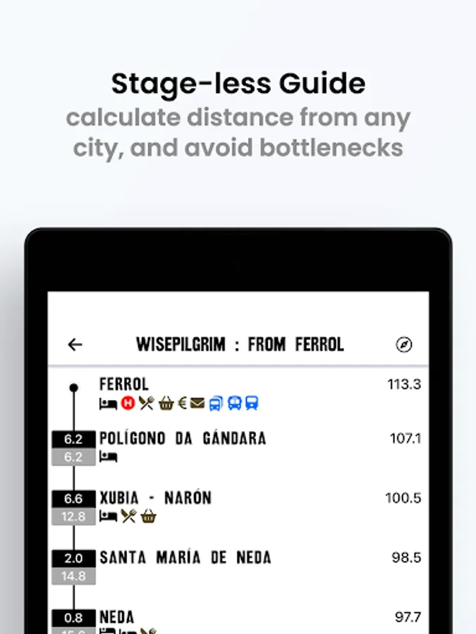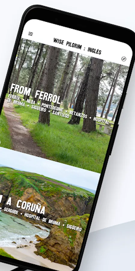 This guide covers the Camino Inglés from both Ferrol and La Coruña to Santiago. It has been redesigned and now works almost exclusively offline (to share your comments with others will require a data connection). As more an more albergues share their WiFi this becomes less of an issue, and the guide will tell you which ones offer WiFi.