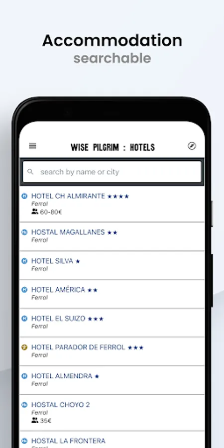 A full directory of Albergues, camping, hotels, pensions, paradors, and cases rurales.