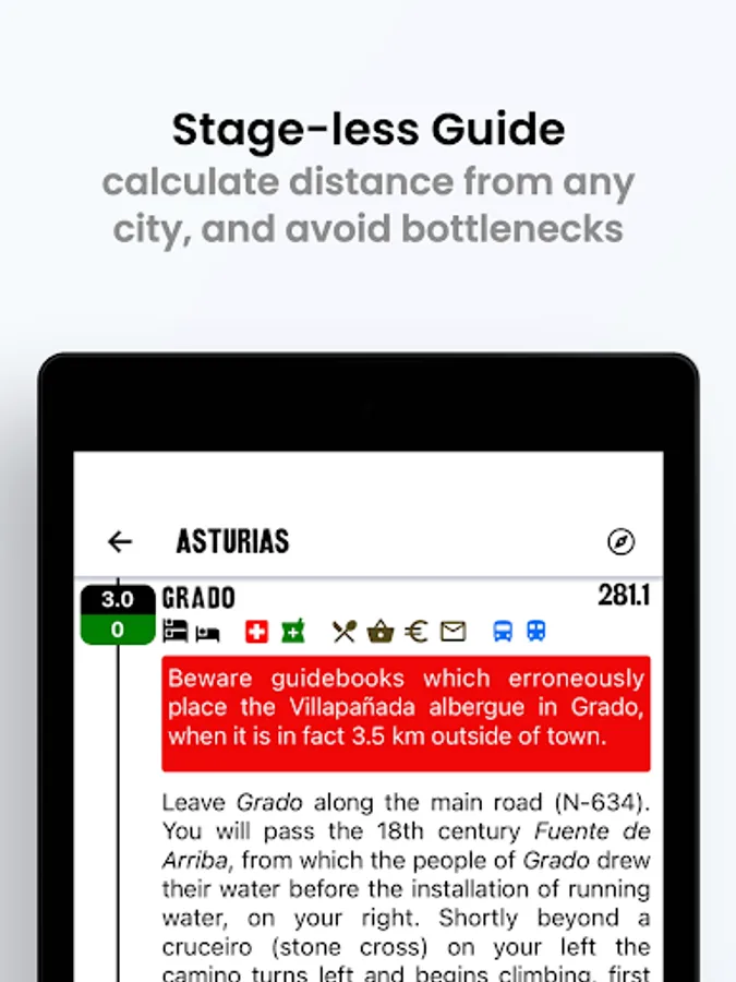 The app is updated regularly with new content and new features and offers you the ability to leave tips for pilgrims following behind you.