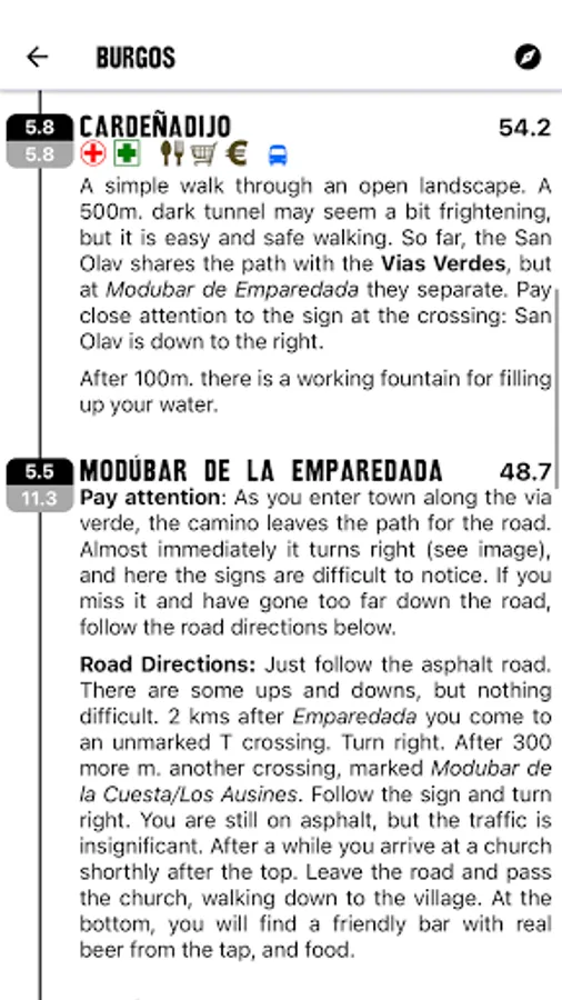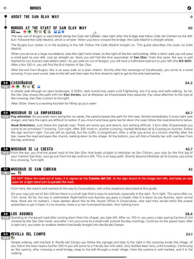 It includes offline maps, camino variants, lodging and sightseeing suggestions, and offline mapping capabilities. It also included the ability for you to leave your own suggestions for pilgrims following behind you.
