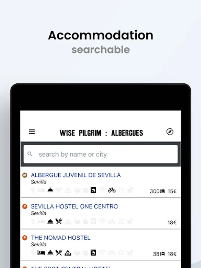 A full directory of Albergues, camping, hotels, pensions, paradors, and cases rurales. Over 400 in total, with special attention to those that can be booked online.