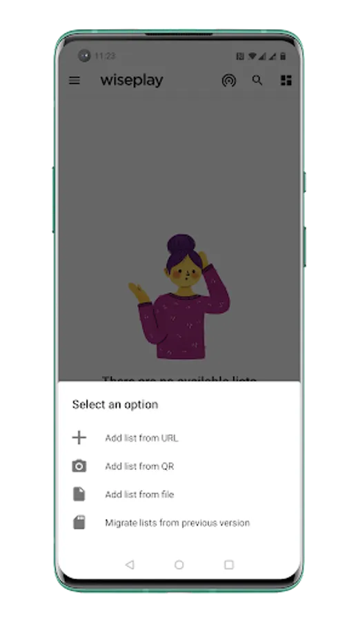 The official version of Wiseplay does not include content. This means that you must provide your content from your device, lists or through the browser. The Wiseplay team does not condone the use of illegal or protected content.