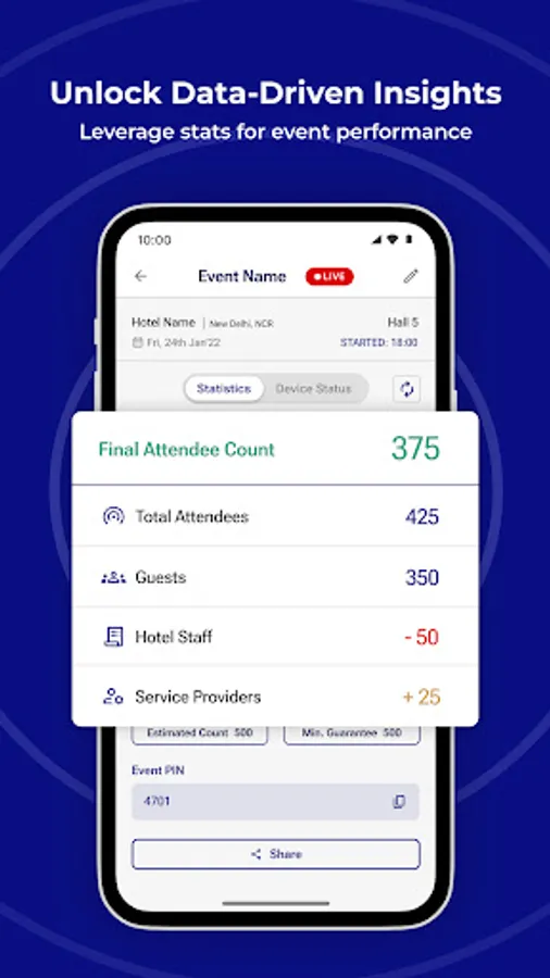 2. Easy to use: WiserCount is easy to set up and use. Simply place the device at an entry/exit or high-traffic area, enter the event PIN, and start the event. You can then see the results live on your WiserCount application.