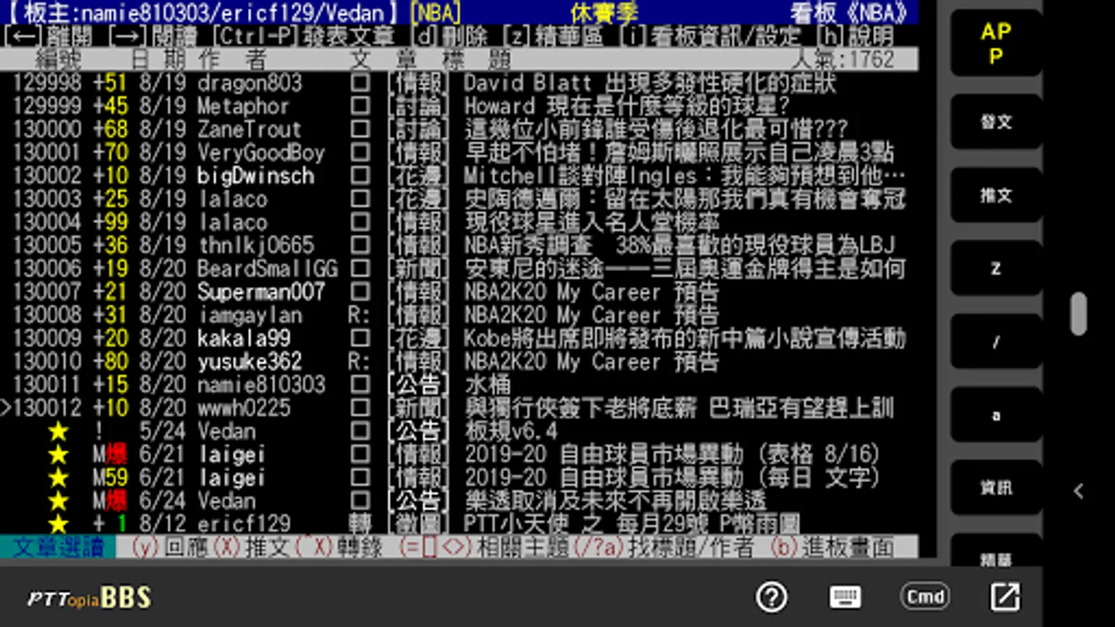 * App/BBS(Telnet) 雙模式即時切換,喜歡App的直覺操作但又不想拋棄完整的終端機PTT功能,現在開始你可以同時擁有, 無縫切換。