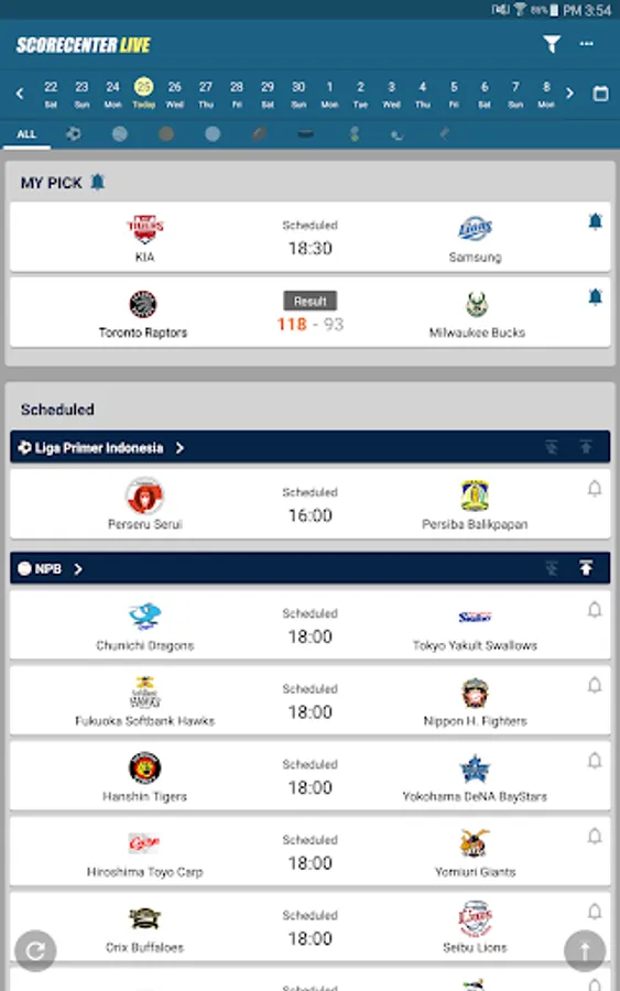 ScoreCenter LIVE lets you stay up-to-date with sports matches anytime, anywhere. From the most popular sports such as the soccer, baseball and basketball, to football, ice hockey, and even formula 1. Don’t miss out on ScoreCenter LIVE, the “all-in-one sports app” that supports over nine sports and more than 100 tournaments and leagues.