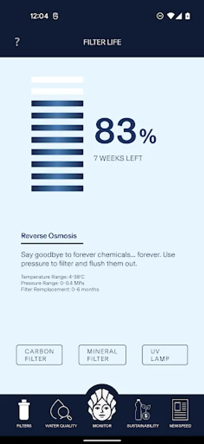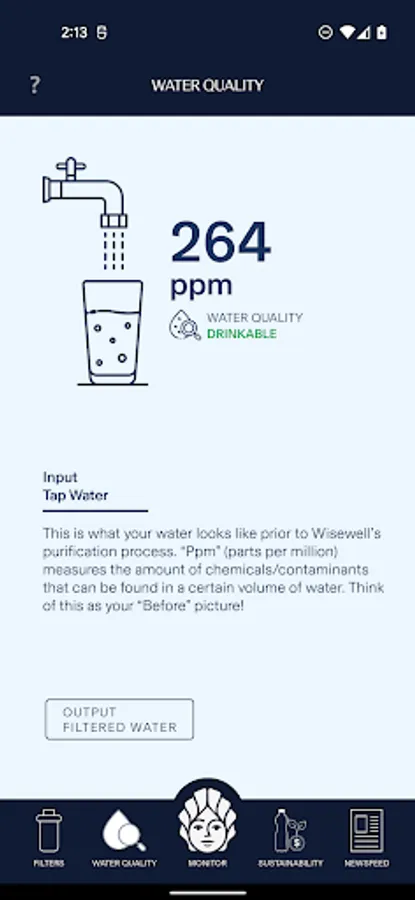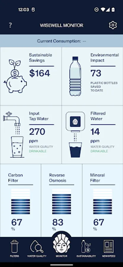 Trust Your Water with the Wisewell App. Once connected to your Wisewell, the app uses internal sensors, Bluetooth, and Wi-Fi connectivity to give clear insights into water quality, filter life, environmental impact, and financial savings.