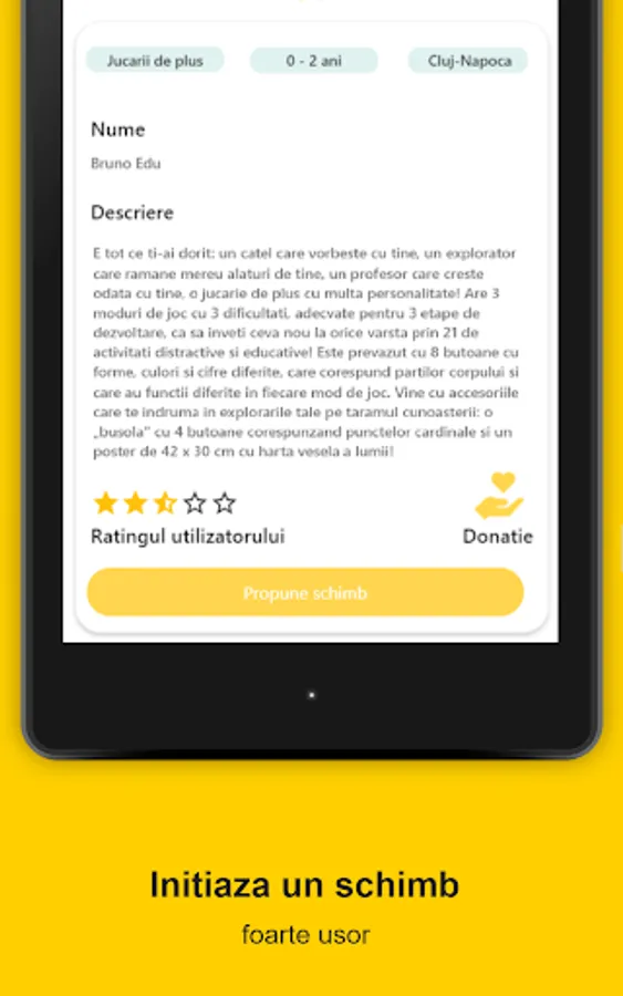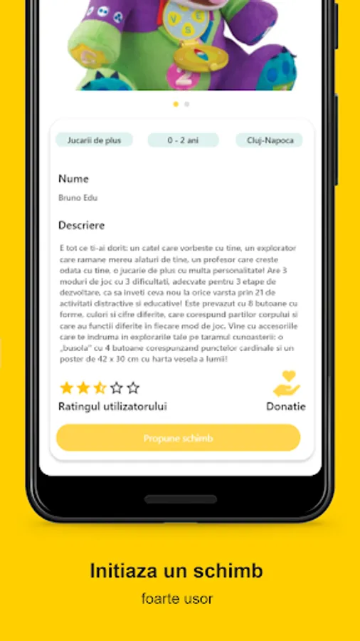 - take some pictures, add a description, and post them in the application. You can also check the donation option, if you are not necessarily interested in exchange, but simply want the toy to find another home.