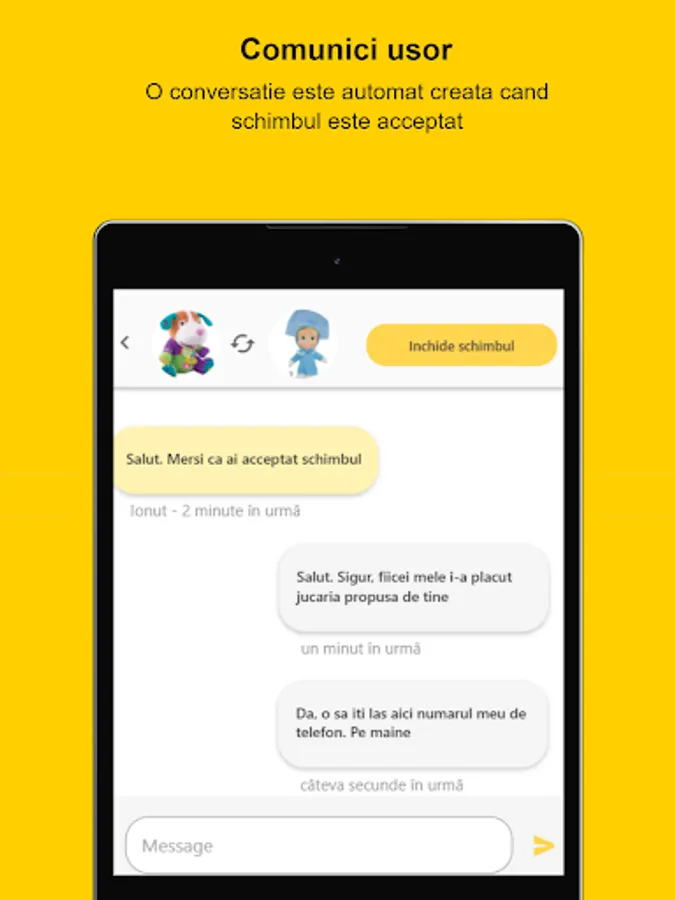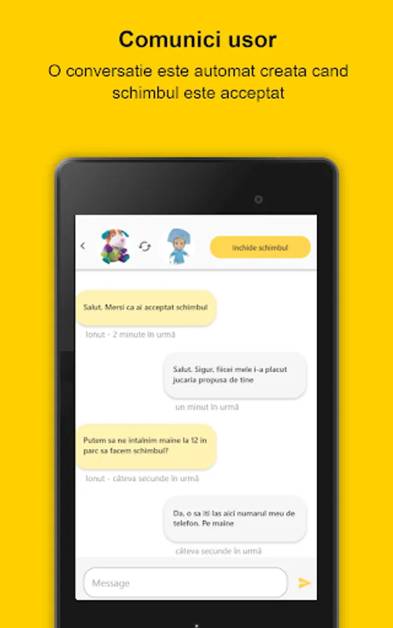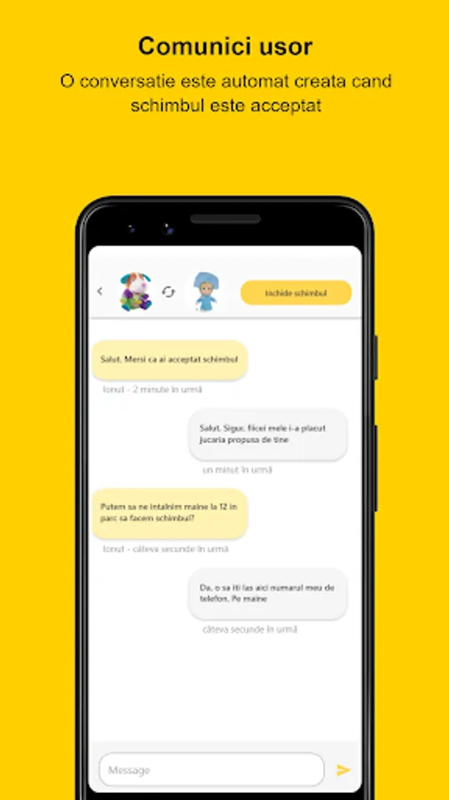 - if the other user accepts the exchange, a conversation will be created automatically, allowing you to discuss directly, setting the rest of the details such as the place and time of the exchange