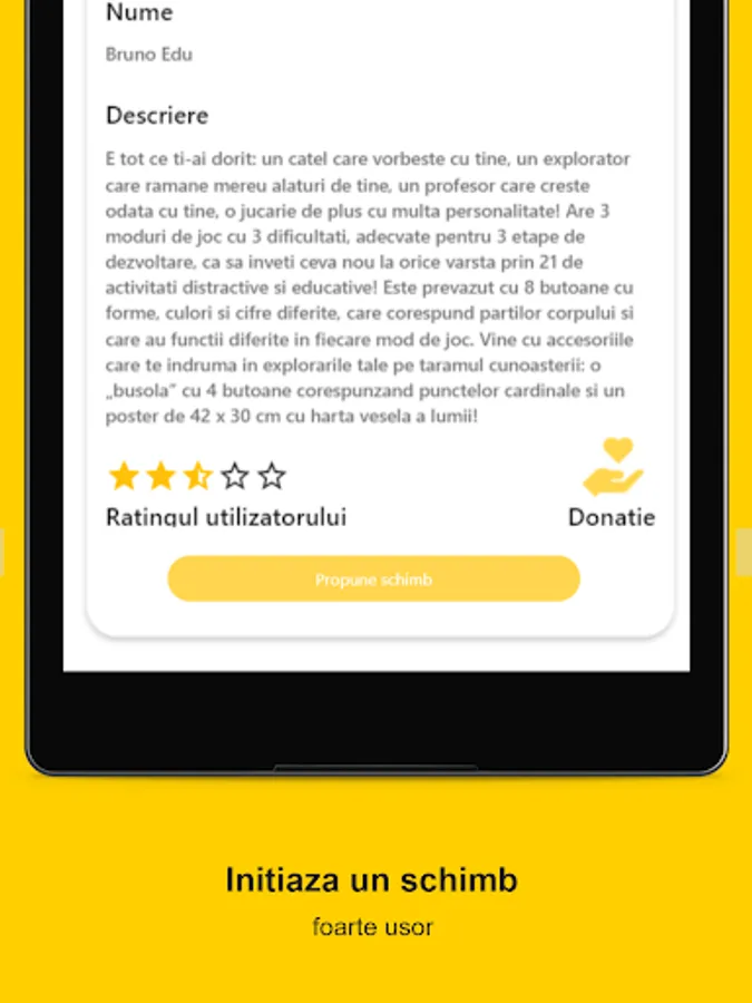 We want to build strong and responsible communities, and WeShare contributes to this process by helping you build relationships with the people around you. Today we change a toy, tomorrow we change an idea, and as soon as we change a mentality.