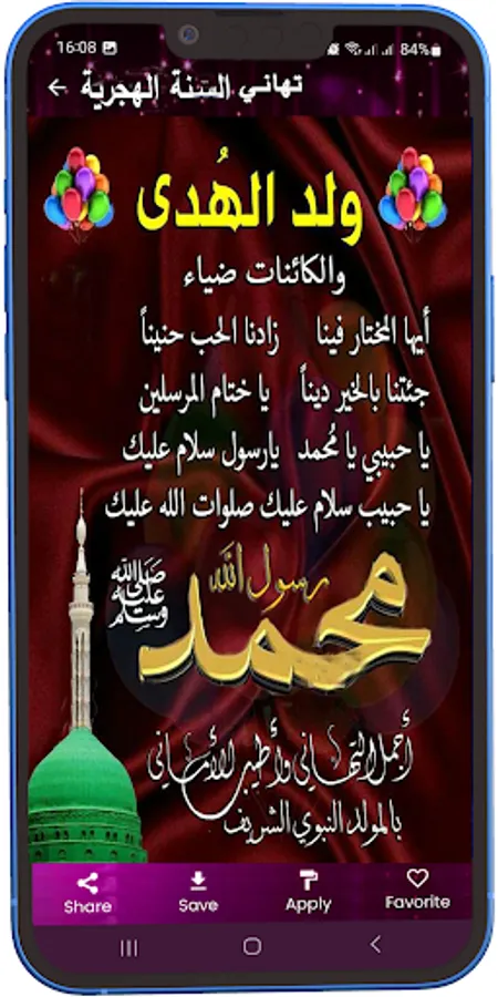 Features of the application of Milad Annabi wishes cards : daily and automatic update, sharing congratulations cards for all occasions through the most famous social media, congratulatory cards in high definition HD, the ability to download congratulations images for all occasions