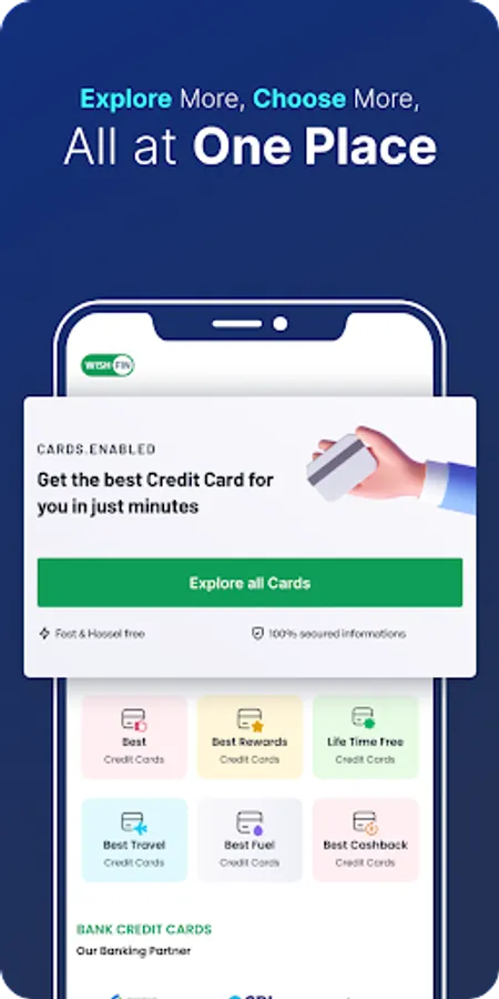 Wishfin Card App is partnered with all Top Credit Card Issuers. You can make an SBI Credit Card apply online and apply for Axis Bank Credit Card, Standard Chartered Credit Card, and IDFC First Bank Credit Card using the Wishin Credit Card App. The features are given below:-