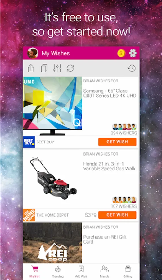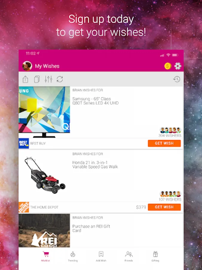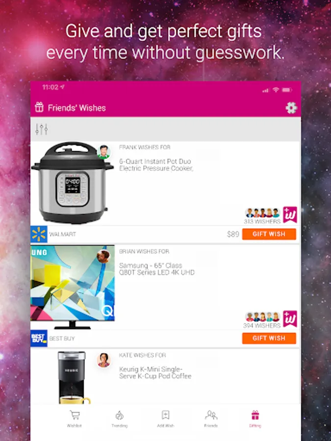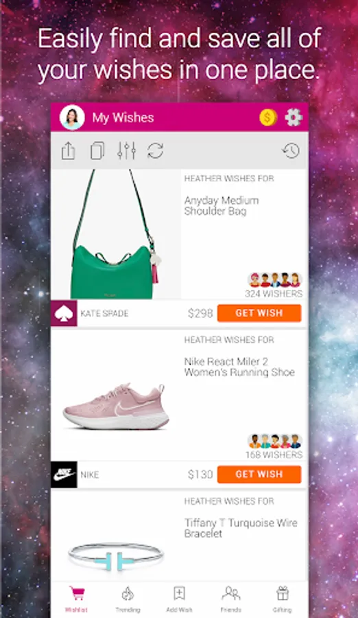 Need a Valentine's list maker or birthday gift list tracker? Use this wishlist as a gift tracker and giftbuster. Do you wishupon a gift? Use this wish app for your registry and wish shopping.