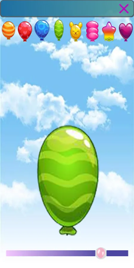 Just slide the seekbar to inflate the balloon and leave the seekbar to make the noise for kids.