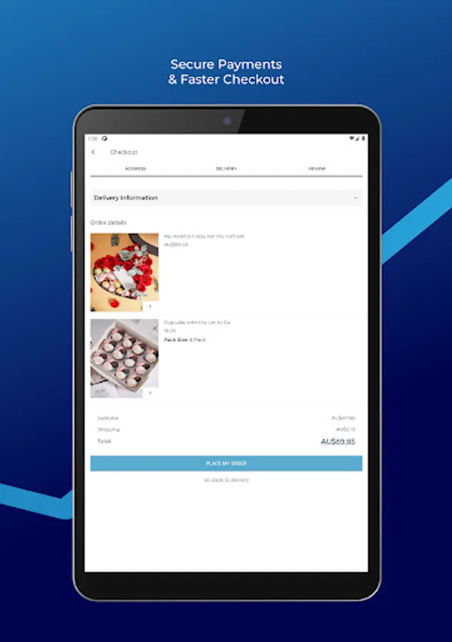 Make payments securely & confidently with encrypted channels. Check out faster with your saved delivery information.