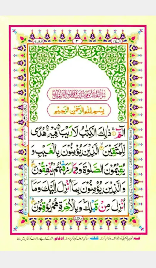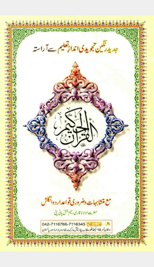 Quran is the essential text book for Muslims which they believe. It is in Arabic literature. It is 16 lined Quran which is widely used in all the Muslim countries. Tajweed has many rules but the basic rules are four which is in fours colors. Green color is for bold, pink for ghunna, orange foor ikhfa and blue for qalqla. By following theses colored rules we can recite much batter quran.