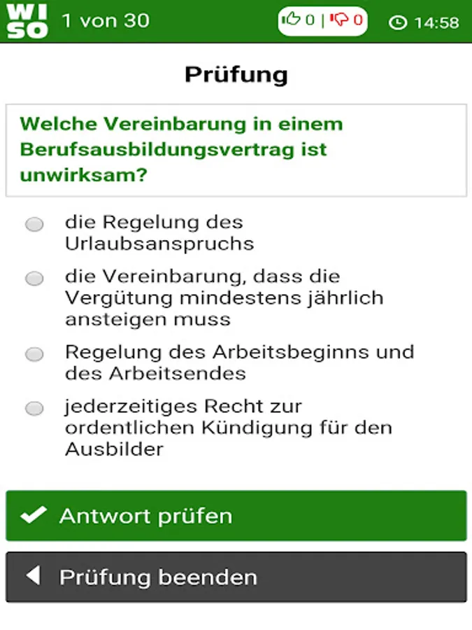 "Learning WISO!" With I'll make you learning and repeating as easy and effective as possible. For this I have over 1500 of my students asked how the app should be constructed and tries to implement their wishes as possible. All questions my app (currently over 380) you can use for free and so prepare you for an exam or your final exam. Since the test relevant content are very similar in this examination subject in most occupations, I have created an intersection of the most important issues. Because all questions are free to use, you can verify that all relevant issues are dealt itself.