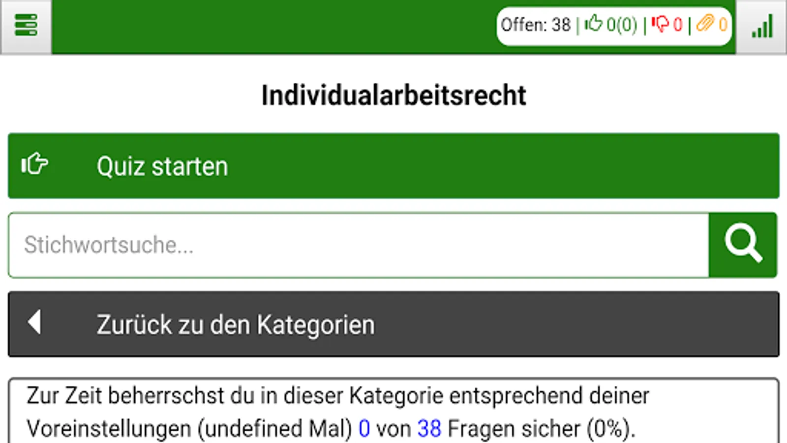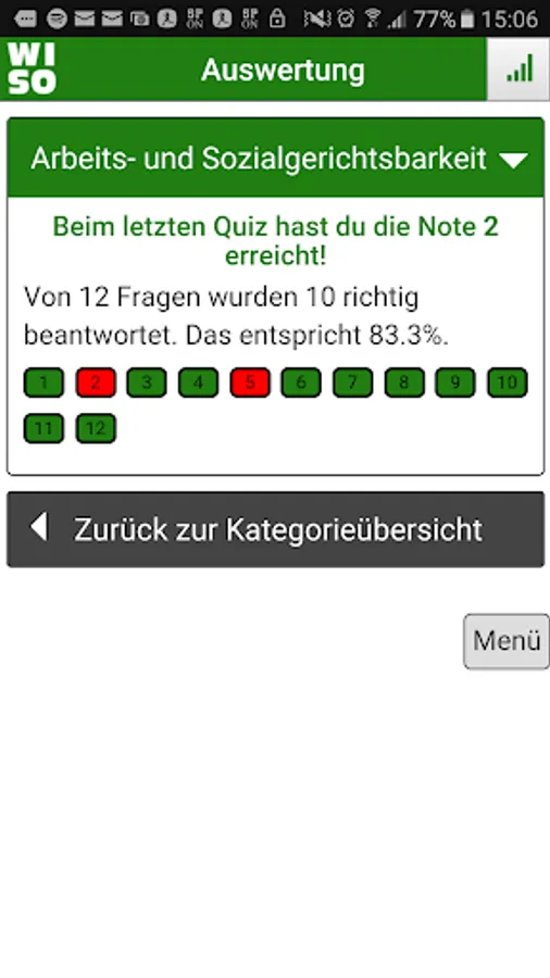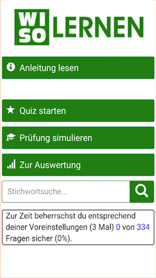There are two different quiz types: the learning and the test mode. The questions are arranged thematically, so that the learning mode different topics can be learned. In test mode, questions must be answered in all subject areas. At the end of a quiz you get an overview of your achieved percentage and the correctly or incorrectly answered questions. Each newly launched Quiz questions and answers appear in random order.