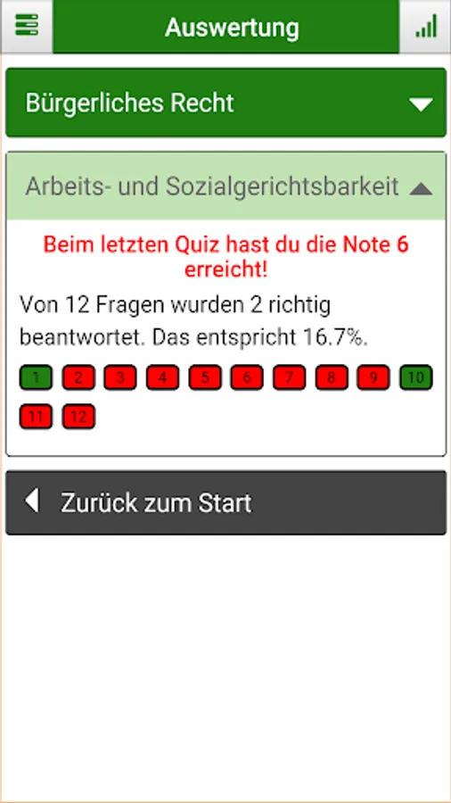 Questions that you can not answer certainly can be bookmarked and be processed at a later date. Questions you got wrong will be stored and can be retrieved later. A quiz can also be interrupted at any time and continued at a later time or restarted.