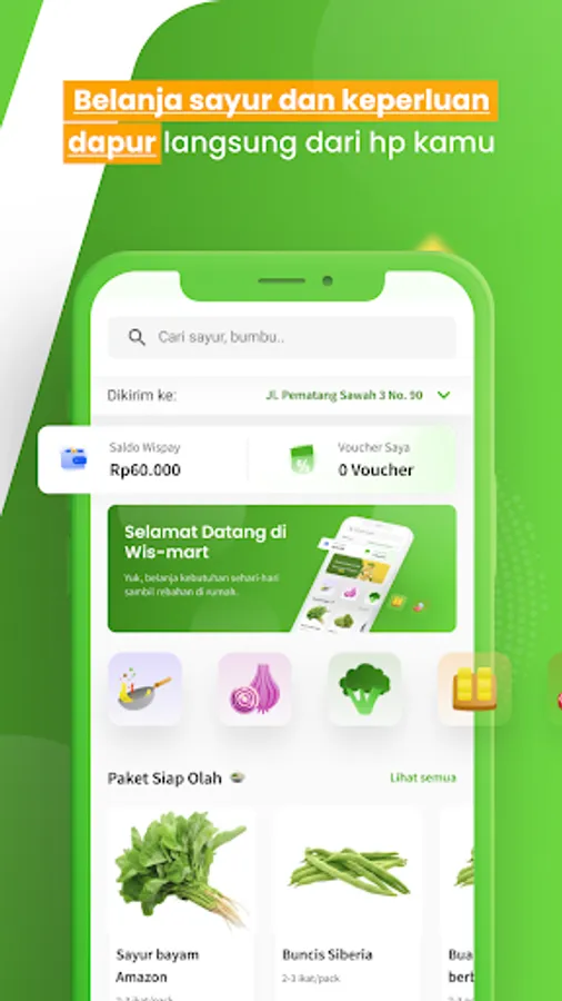 - Shop for vegetables and kitchen necessities directly from your cellphone