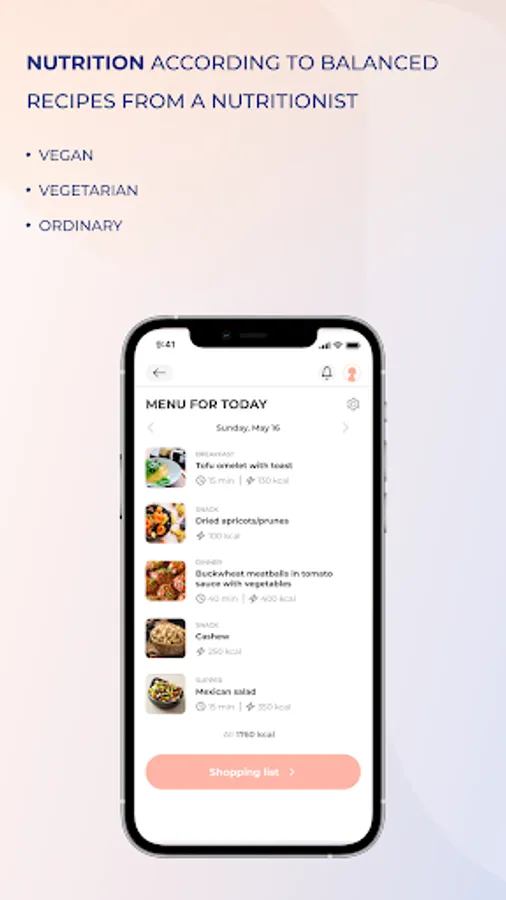 - more than 300 delicious recipes from a nutritionist for different types of food and a personal menu for every day