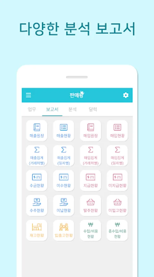 * Supports various reports analyzing input data. You can quickly check the management status of our company.
