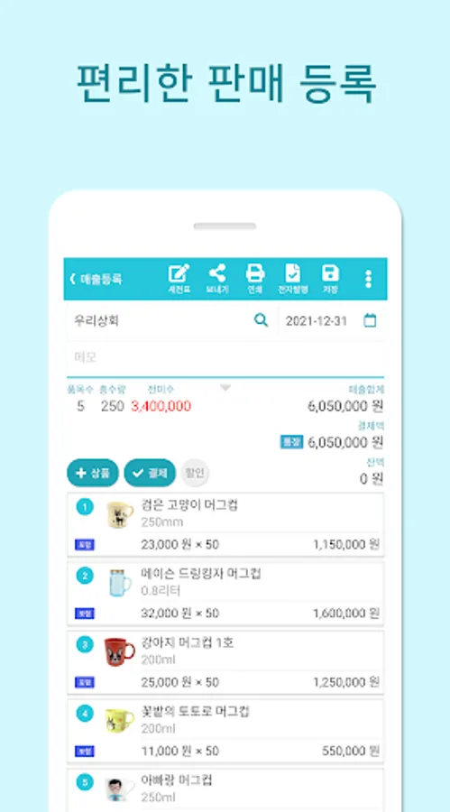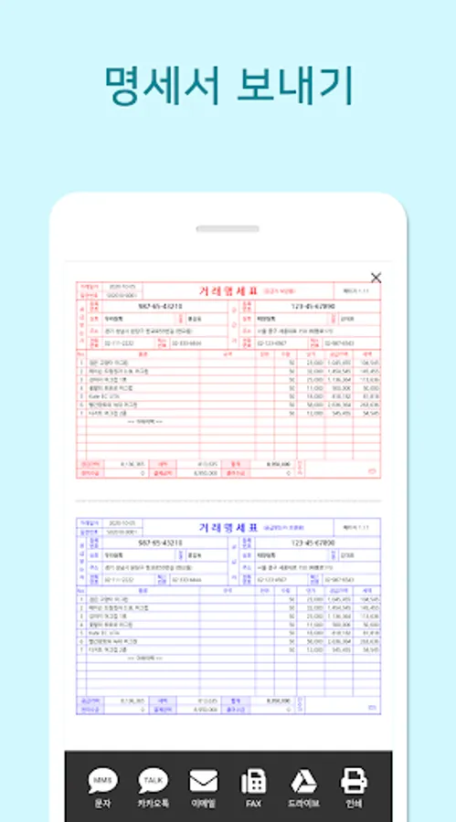 * You can write a quote or order form and send it via text message, Kakao Talk, e-mail, fax, or printer.