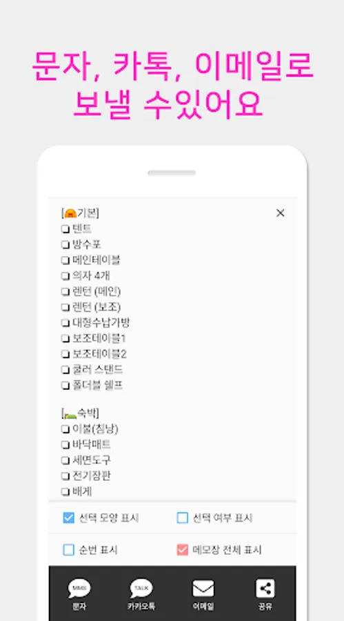 You can quickly send a checklist via KakaoTalk, text message, or email.