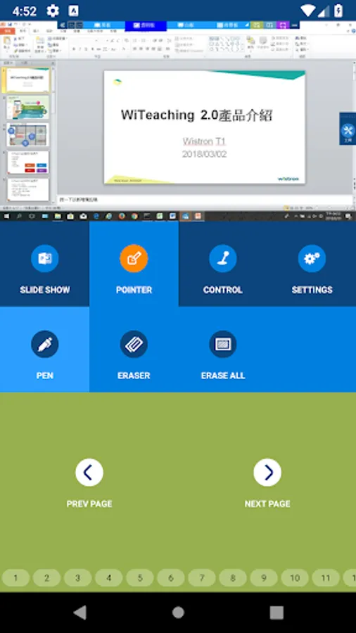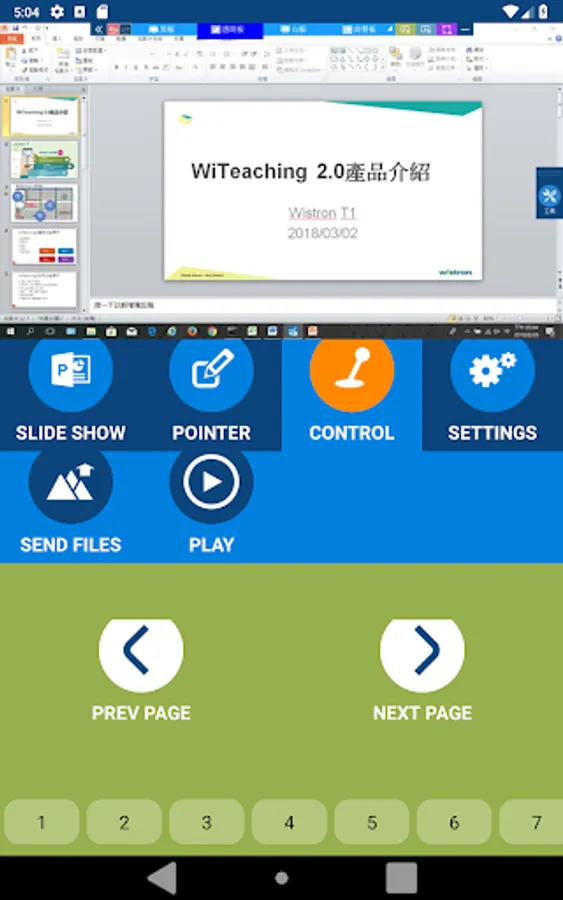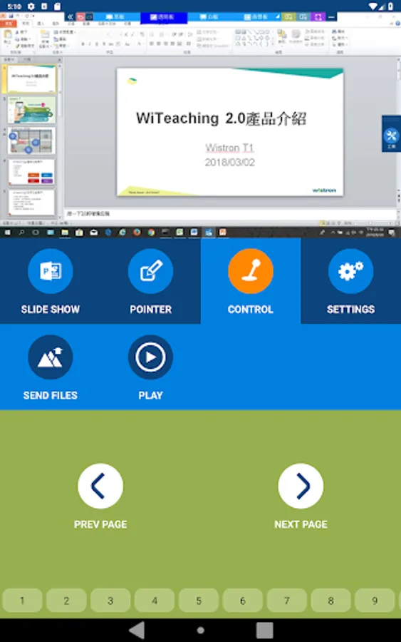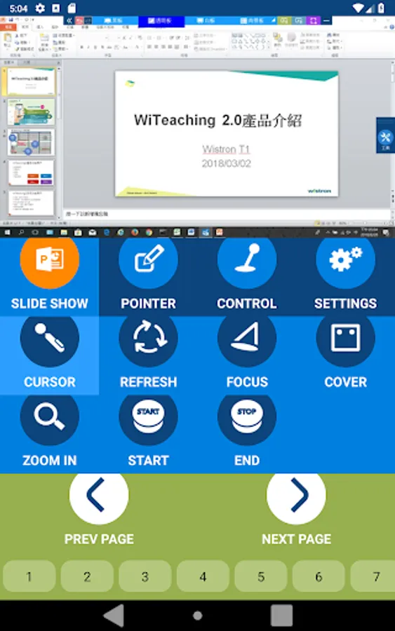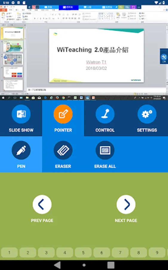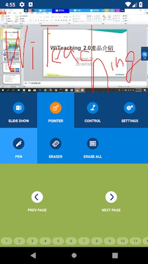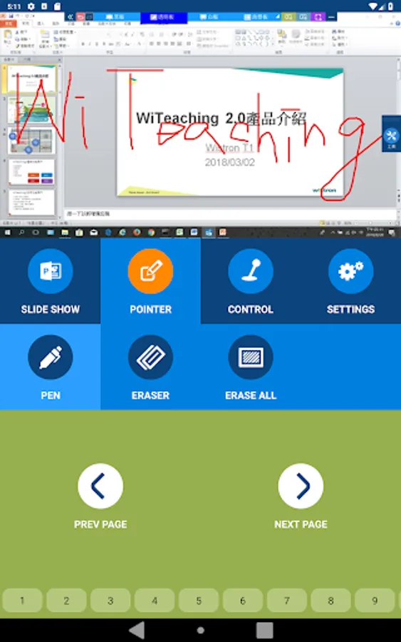 1. 支援手機遙控: 使用手機或平板遙控教室電腦的白板工具與簡報功能,可支援16隻遙控器同時操作。