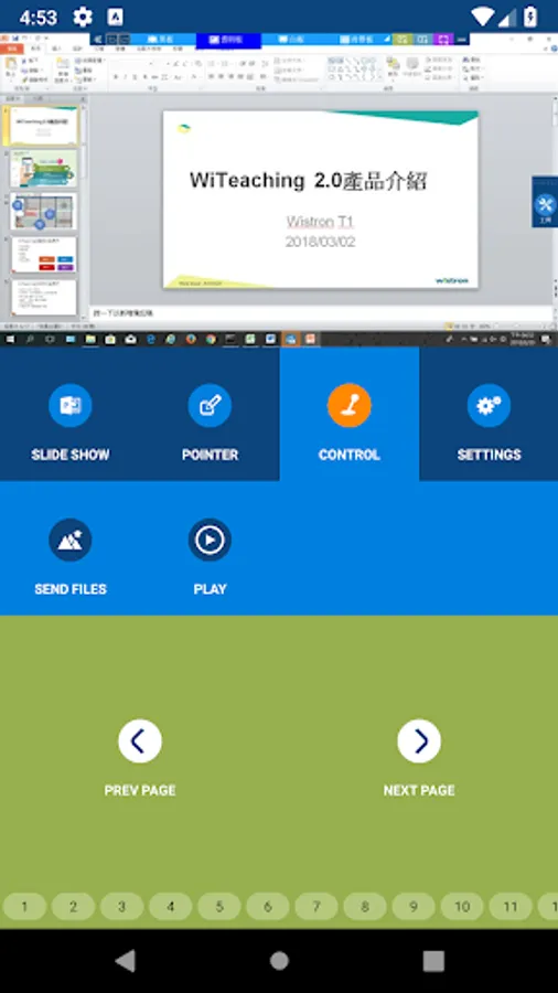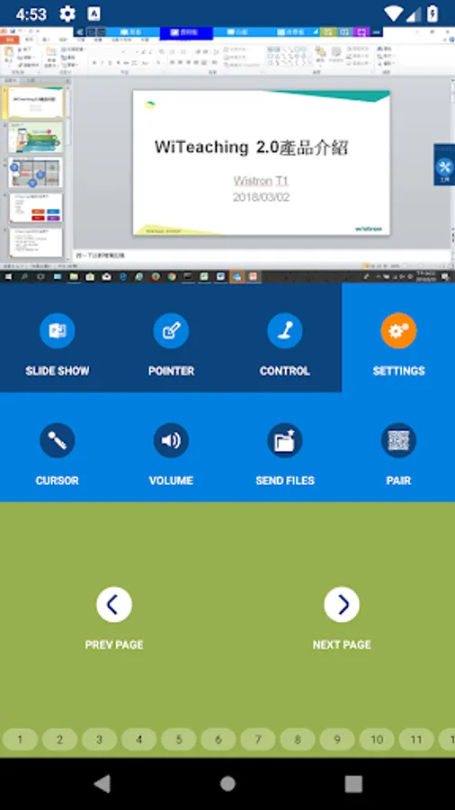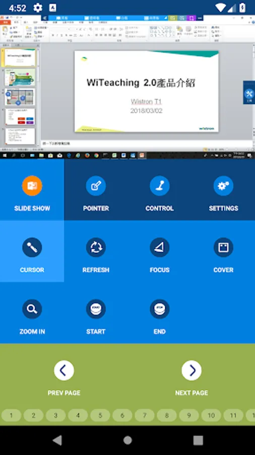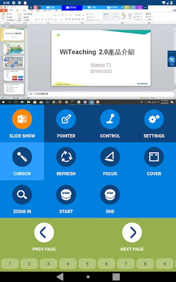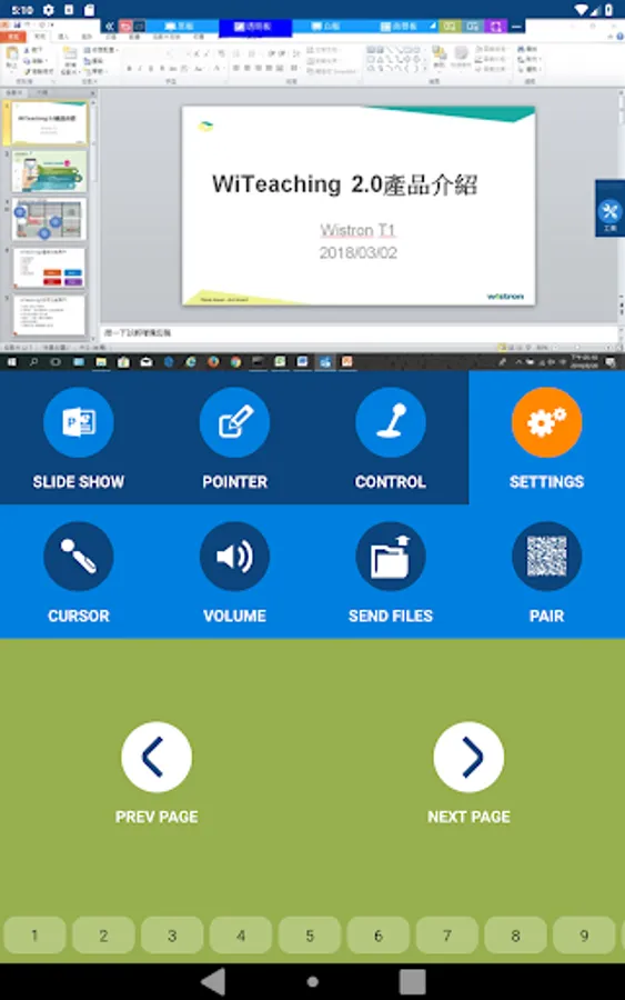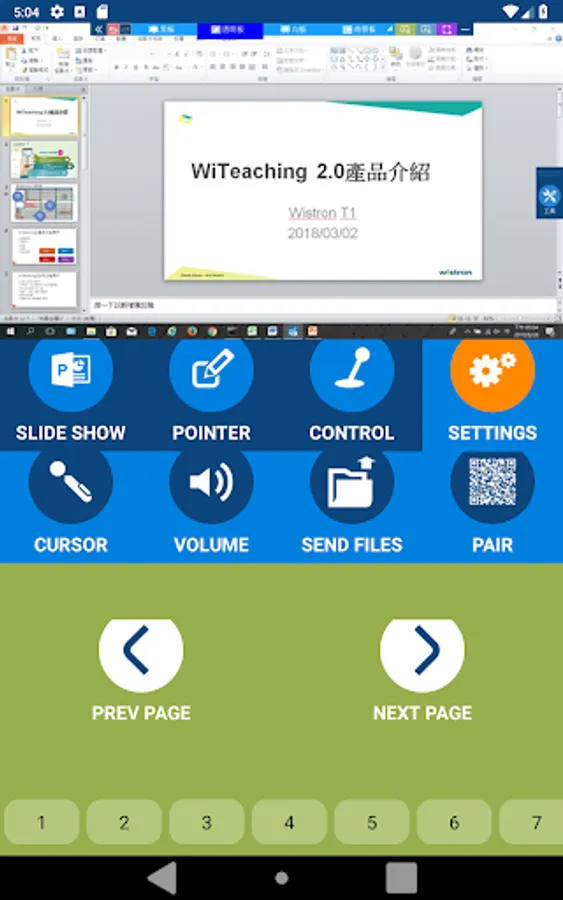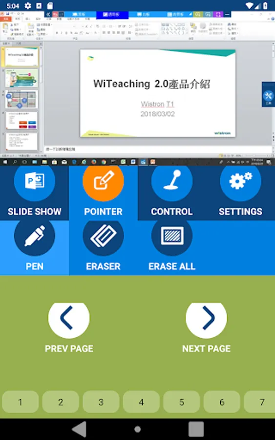 1. 支援手機遙控: 使用手機或平板遙控教室電腦的白板工具與簡報功能,可支援16隻遙控器同時操作。