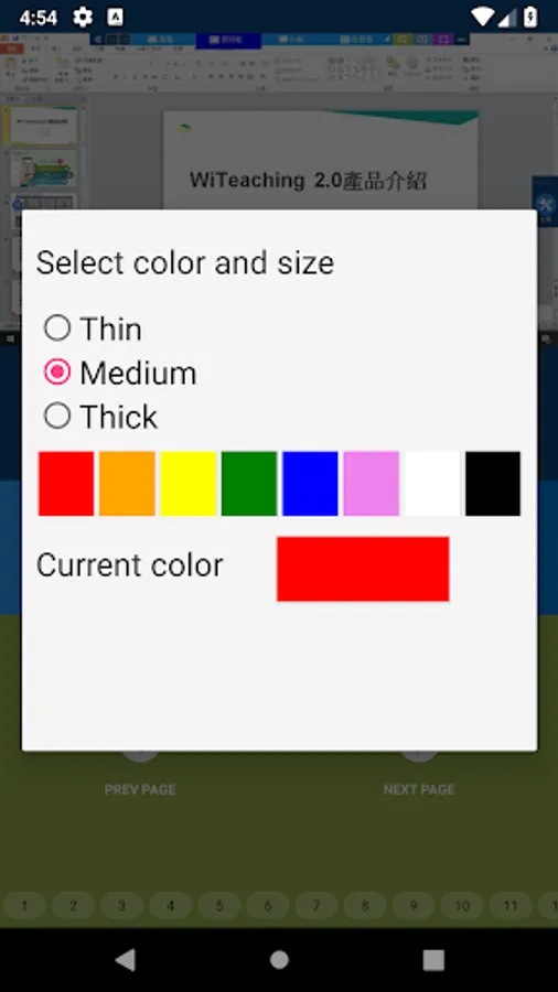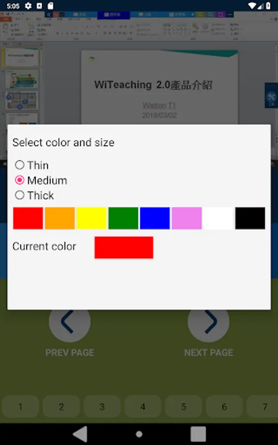 2. 遠端板書:提供板擦及不同顏色及寛度的畫筆功能,供教師在裝置上書寫,並在電子白板中同步顯示畫筆。
