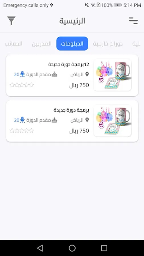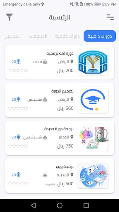 An application that displays educational courses inside and outside the Kingdom of Saudi Arabia, through which you can request the course and the vision of the trainers and choose between the training bags, and provides an online payment method.