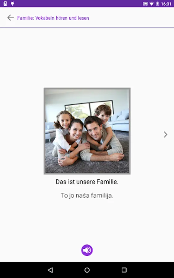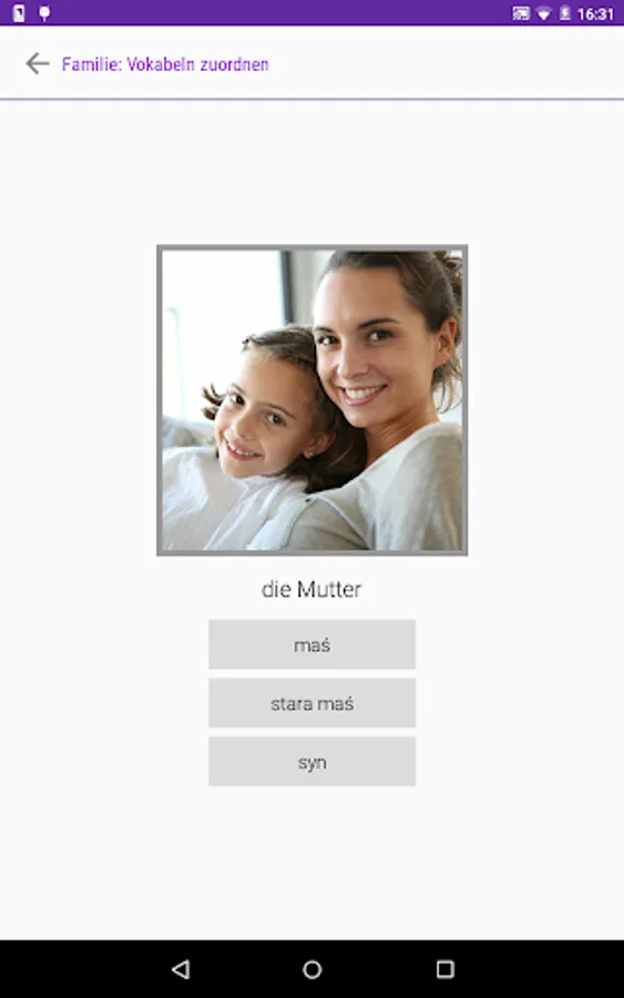 The app also includes 3 types of exercises: listening and reading, assigning, writing. Based on various topics, such as food and drink, family or fruit, Sorbian / Wendish vocabulary can be learned.