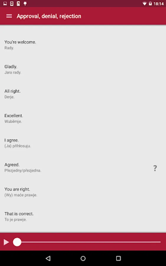 You hear on the app Serbsce lochko simple phrases relating to everyday situations,such as: how to say hello and goodbye, how to introduce yourself, how you ask for something. You will also hear questions and answers for leisure and culture, food and drink, time references and more. Sorbian easily helps you to initiate language encounters, to express yourself in selected situations in the Sorbian language or to understand conversations in Sorbian. You will find in Serbsce lochko also the Sorbian alphabet and some references for pronunciation. The Sorbian app might also encourage you to get more involved with the Sorbian language and culture, to broaden your language skills or to learn Sorbian.