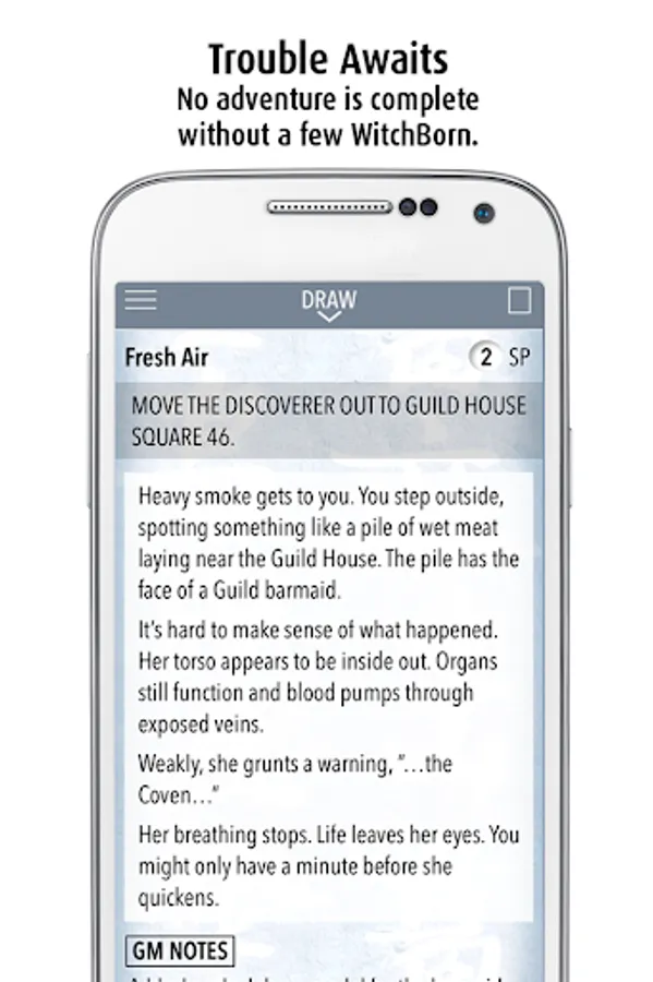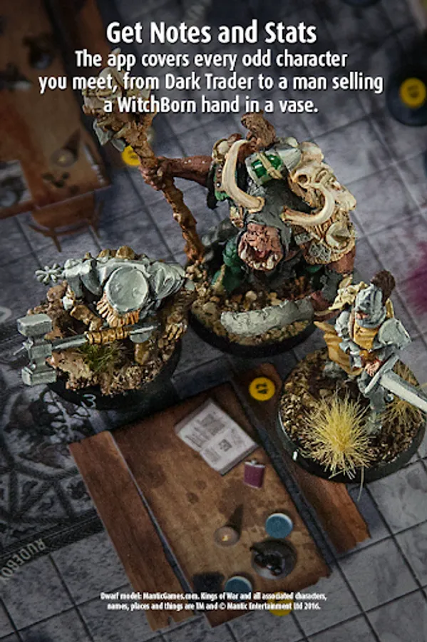 The WitchBorn® is a campaign-based miniatures game with the kind of rich storytelling usually only found in roleplaying games. The app reveals random discoveries detailing what your warriors see and hear. No night in the Pit is ever the same. Get notes and stats for every odd character you meet, from Dark Trader to a man selling a WitchBorn hand trapped in a crystal ball. Just avoid the brawls!