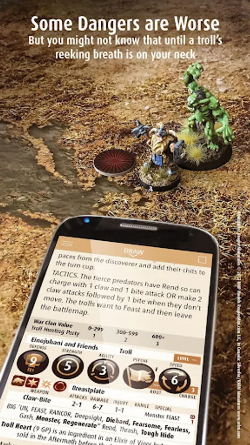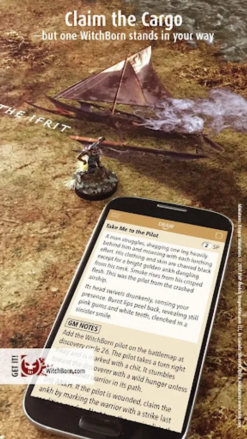 Enter Perdition is updated to be the first adventure in the series. The app reveals random discoveries, detailing what your warriors see and hear. It also provides the notes you need for every odd character you meet, from an undead horse thief swinging from a hangman’s noose to a gruesome Orc who wants to rescue a girl who can raise the dead.