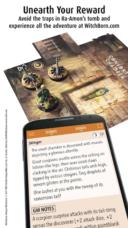 The WitchBorn® is a campaign-based miniatures game with the kind of rich storytelling usually only found in roleplaying games. The app reveals random discoveries to assure no foray into the Wastelands is ever the same. Get notes on what your warriors experience plus stats for every odd character you meet. But beware—you won’t recover Aisha without a fight!
