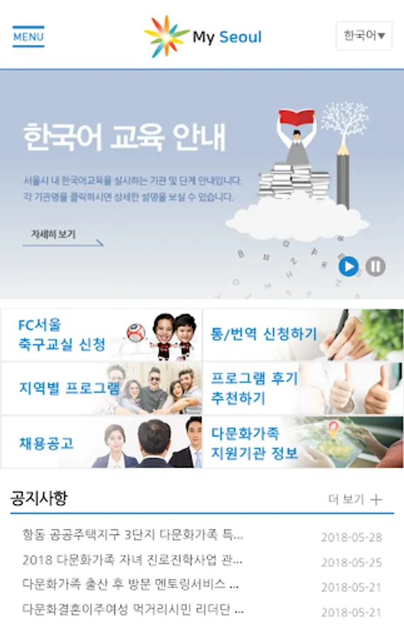 - Foreign residents need information, immigrant support programs, Seoul Multicultural policies, multicultural family support agencies, Korean online teaching guides, program descriptions, Korean Educational Information