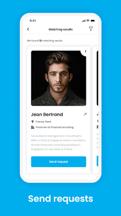- When you accept their request, you can chat with them about their career challenge/answer their questions, schedule a meet-up/a call or a hike in the Alps together!