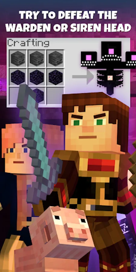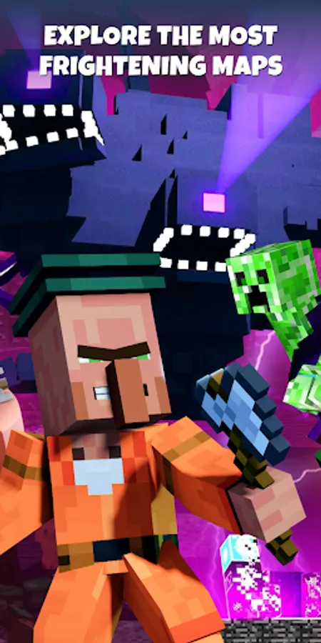 If you are an avid fan of horror stories, then this app is for you. Here you will find a considerable number of survival maps where you will have to fight against bloodthirsty monsters. Locations will be filled with traps, and your primary task is not to get caught. For example, you need a magical weapon to defeat the Withering Storm. But don't worry; in the application, you will find a massive collection of weapons with various guns, swords, and explosives. Using our textures and increasing graphics quality, it will seem that the monsters are next to you.