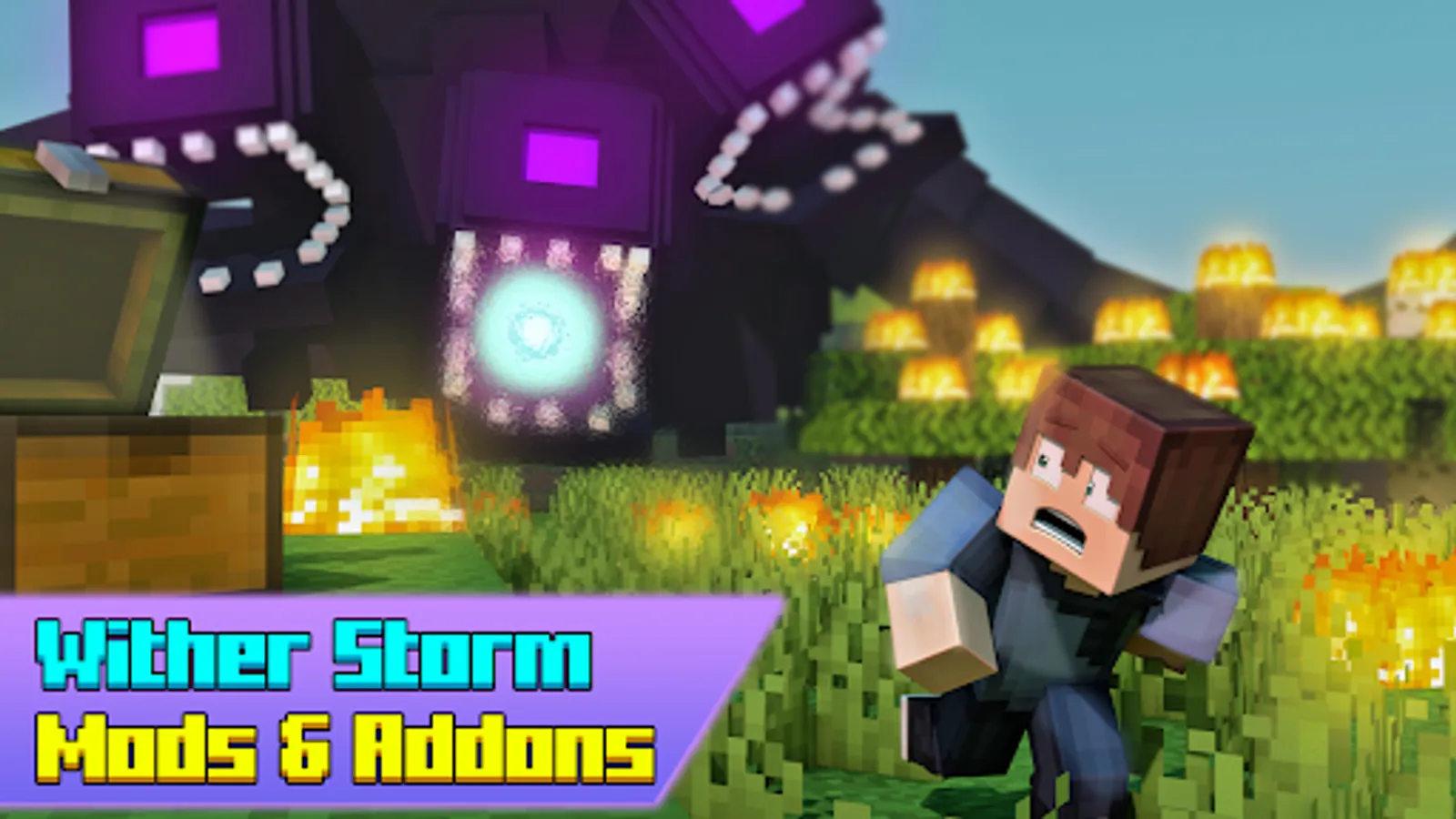 Wither Storm Mod for Minecraft is huge boss is about 20 times bigger than the other bosses! I But than this will not be an easy, so don’t forget to bring a lot of health potions and something else that can make the fight easier. It is much bigger than any of the usual mobs in your game, and its main force is the ability to shoot fireballs, but it can also cause damage by hitting targets and blocks. I want to warn you right away that it is almost impossible to defeat him alone. I advise you to install Wither Storm mods for mcpe together with your friends and try to defeat him with a team and different toolbox tacktics like: tnt,