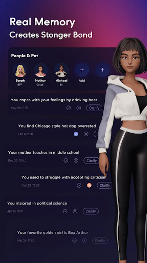 Select from multiple dynamic relationship statues, and immerse yourself in conversations as personal and complex as real-human interactions.