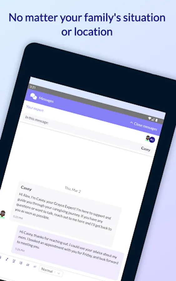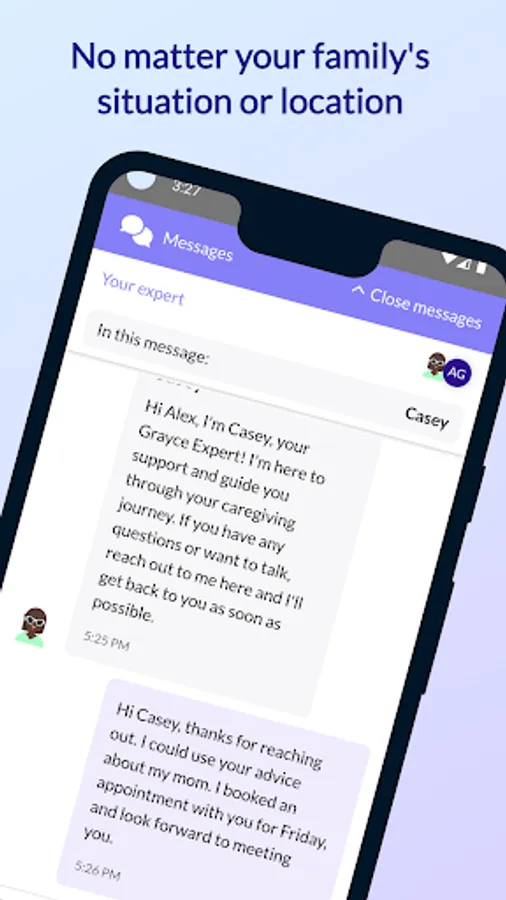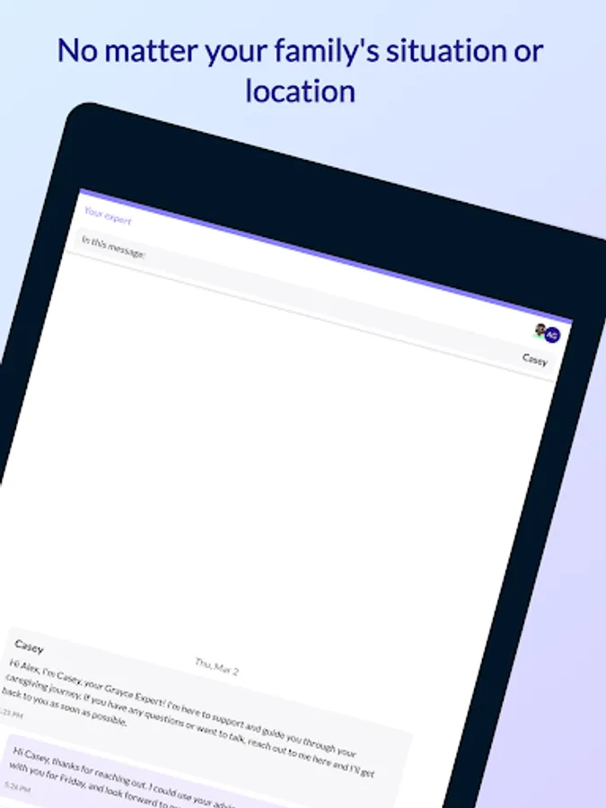 At Grayce, we know personal life events can overwhelm anyone. With our personalized and tech-driven support, we step in for our members during these stressful moments, allowing them to stay engaged in their personal and professional lives. Through our modern platform, we empower people who care for loved ones, whether that’s a child, aging parent, or person dealing with a health crisis.