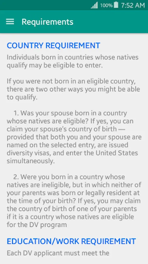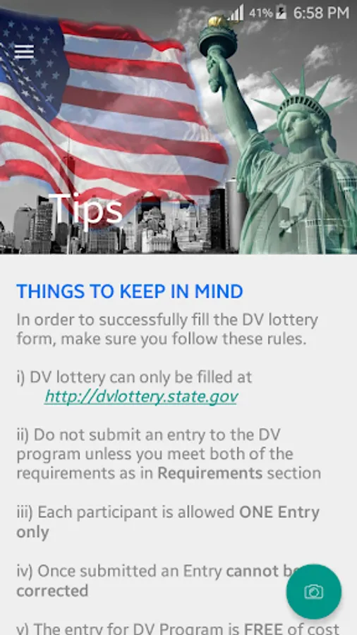 This app is a guide for people who are going to fill the form for electronic diversity visa lottery (edv) 2020. DV 2020 app helps you to fill the DV lottery form.