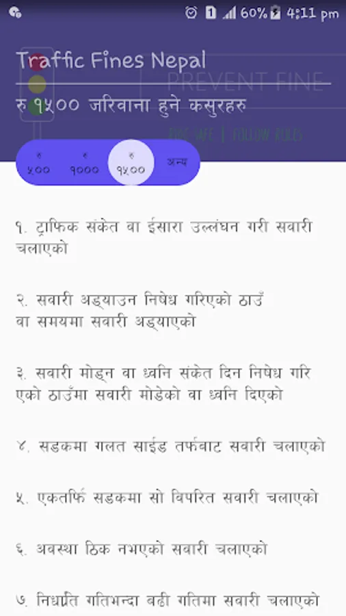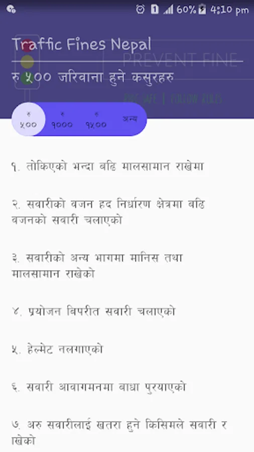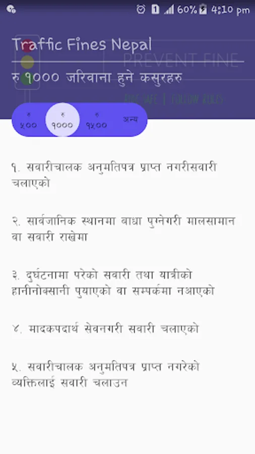 So, you want to know the fine amount for the specific traffic rule or you are currently being charged for breaking the rule. No worries! this app will show you the amount you will need to pay for the specific rule.