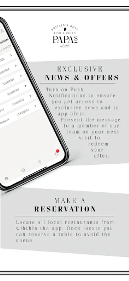 Papas Fish and Chips App allows you to collect loyalty points when making your favourite fish and chip purchases. Points can be redeemed against meals, drinks and even souvenirs.