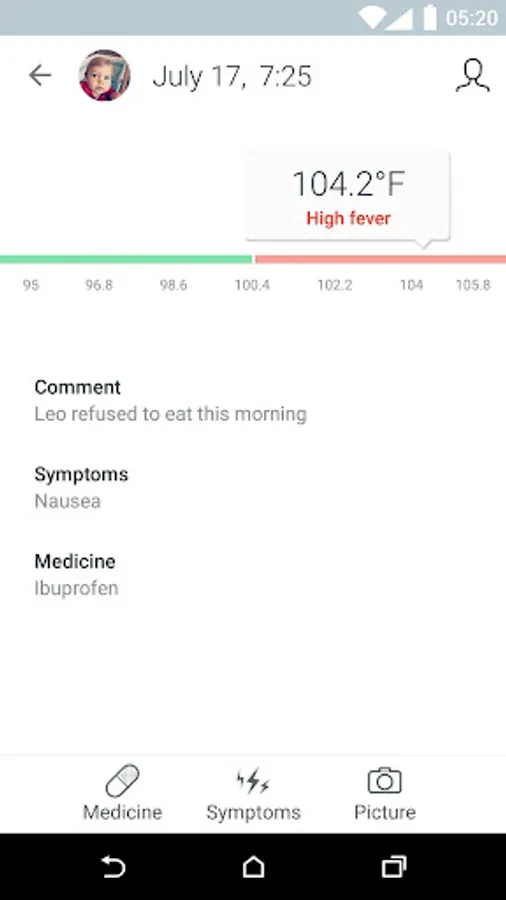 If you log a high temperature reading, Thermo can help you assess the severity of your fever.
