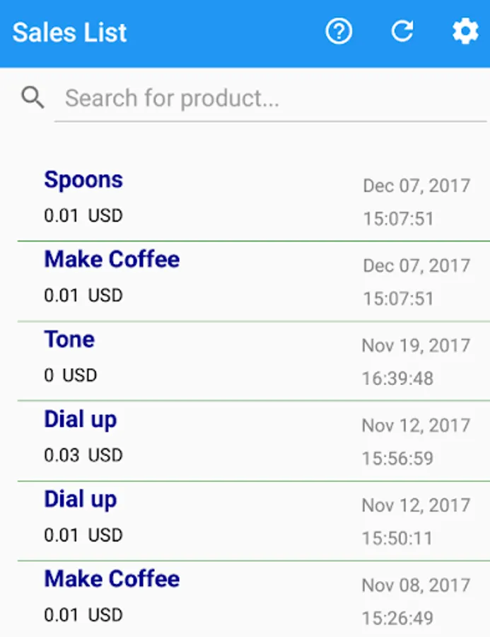 After entering in the correct API username / password and URL, the App will display listing of items that have been sold.