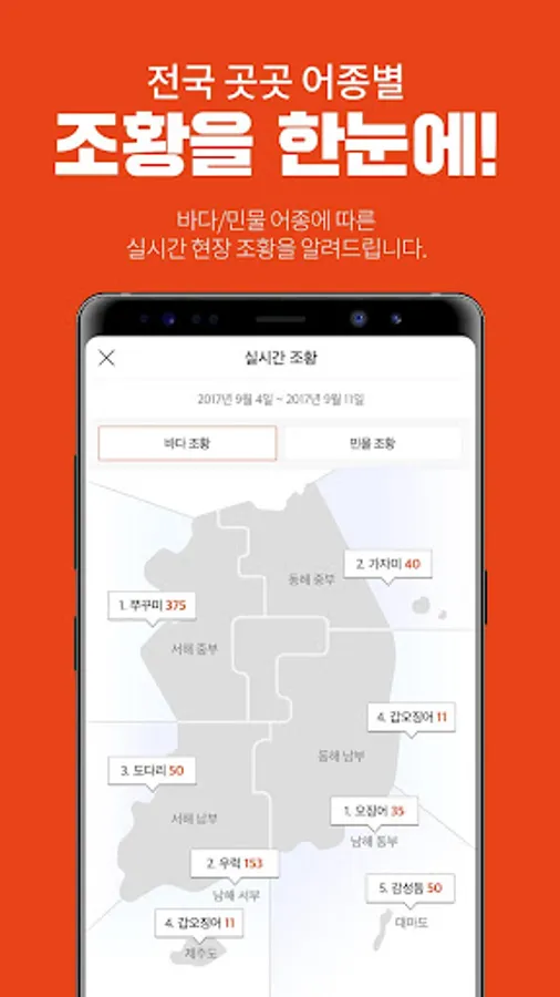 물반고기반에서는 전국의 바다낚시와 민물낚시에